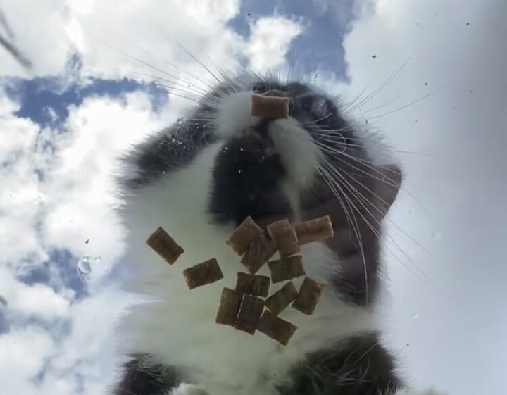 青空の下でモグモグ食事する猫さんを観察してみた♪