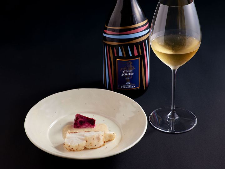 白身魚の女王というべき鯛を素材に、熟成によりうま味を増幅。長期熟成させた「キュヴェ・ルイーズ」との同調を図る。