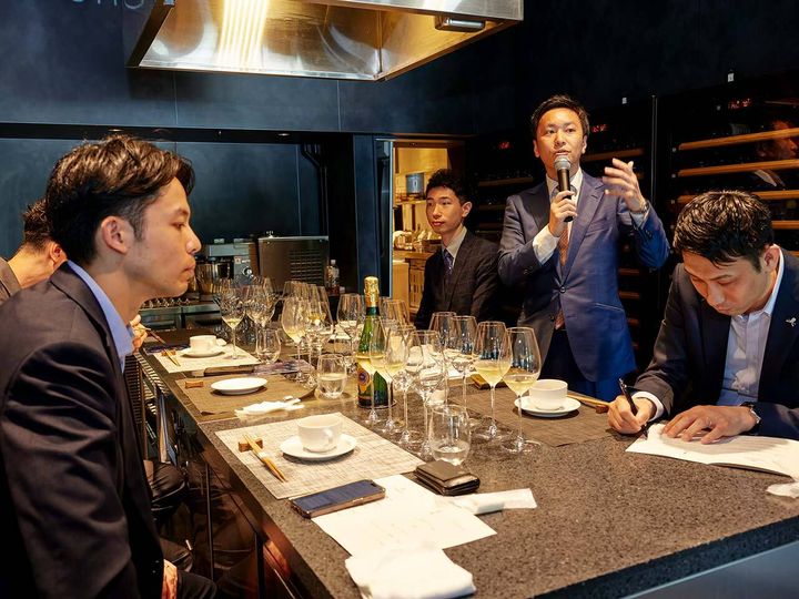招かれたのはコンクール優勝歴を誇る著名ソムリエのほか、『かんだ』の神田裕之料理長や『神楽坂 石かわ』の石川秀樹料理長、『レストラン ナベノ-イズム』の渡辺雄一郎シェフや東京會舘『レストランプルニエ』の松本浩之シェフなど錚々たる顔ぶれ!