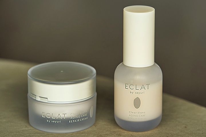 百貨店で美容部員をしていたときツヤ肌のご年配の方がいらして、年齢を聞いたら80代!ツヤ肌の秘訣は、お米のとぎ汁で顔を洗うことでした。ECLATの主成分「米ぬか酵素エキス」はそこからヒントを得ました。私自身、肌負担が少ないシンプルケアを当時から心がけていて、美しくあるためには素材力を育むことが大事だと思っています。肌や髪、体型が整っていれば、好きなファッションをいくつになっても楽しめます。年齢にとらわれず、美容もファッションも思いのままチャレンジしていきたい。