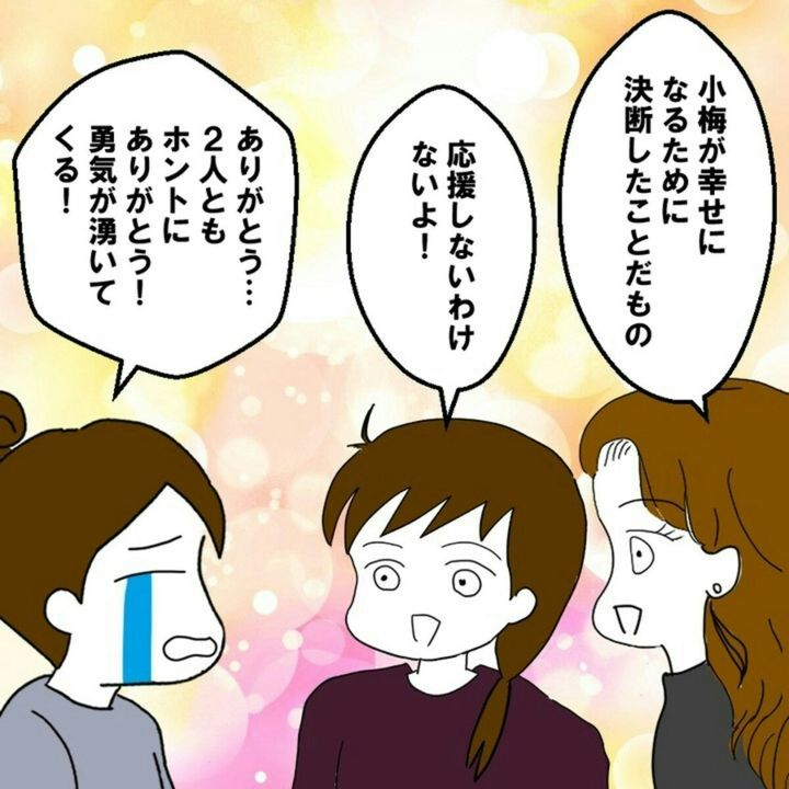 夫や家族と縁を切った小梅さん。孤独の育児が心配ですが、小梅さんには理解して支えてくれる友人がたくさんいます。小梅さんの幸せを誰よりも応援してくれる心強い存在に助けられて、麦ちゃんと幸せな日々を過ごせるはずです。