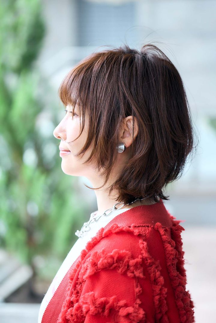 【HAIR DATA】明瀬さんは毛量も多く、襟足にくせがあるので15年ロングヘアを保たれていたことは正解でもあります。ですがカット次第でいくらでも素敵に見せる方法はあります。表面はチョップカットで間引いてボブラインそのままにシークレットレイヤーを入れて軽さを出します。前髪は頬骨の長さで小顔に見せて、サイドは前髪に繋げて作りすぎないように。軽く外ハネして、軽さと動きをだした大人可愛いスタイルです。