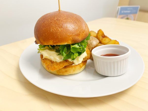 そこで今回、その「あいご」をサクッと揚げたフィッシュバーガーが開発されました。 「海も喜ぶサステナブルなフィッシュバーガー」(1,600円)