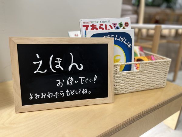 同じ敷地内に「KIDS PARK」や「こどもの視点カフェ」などがあり、その帰りにランチをする方も多いのだそう。 ご自由にお使いくださいのコーナーに、絵本や塗り絵なども完備されていて、子どもたちは遊びながら、ママ友と話しも盛り上がりそうです。
