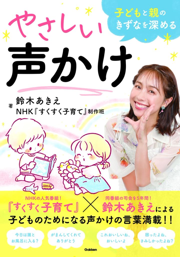 タレントで、年長男の子&年少女の子のママの鈴木あきえさん。5年間MCを務めたNHKの人気子育て番組『すくすく子育て』とタッグを組んだ育児本『子どもと親のきずなを深めるやさしい声かけ』(Gakken)が発売されました。何かと悩むことが多い、子どもへの声かけ。鈴木さんはどんなことを意識しているのか、また、普段のママとしてのプライベートもお聞きしました。
