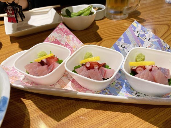 1人1カップずつのお刺身▼(3人分)