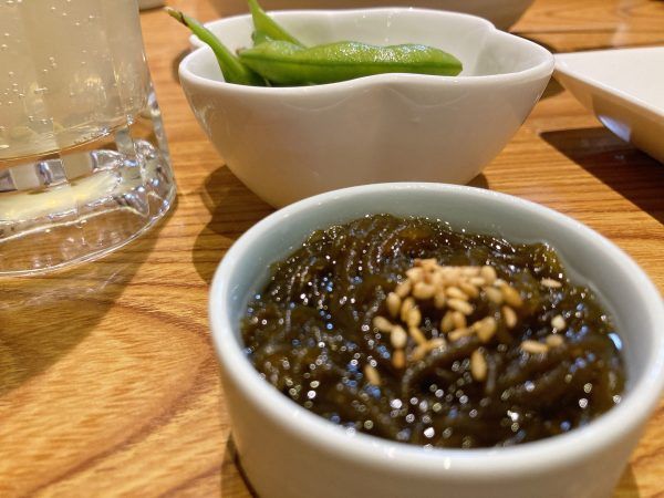 まずはもずくと枝豆▼
