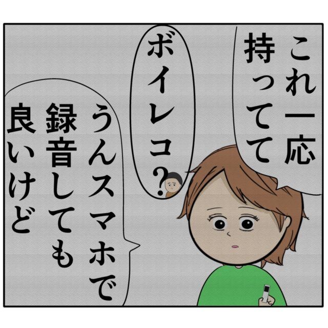すみれさんは「スマホで録音しても良いけど、電話とかきて出ると録音中断されるし、面倒だからボイレコが確実かな」と言ってボイスレコーダーを渡しました。