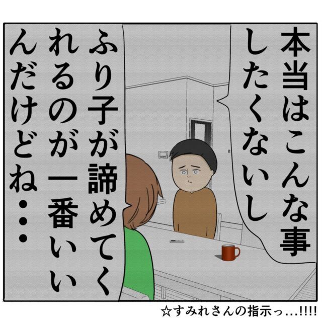 「本当はこんな事したくないし、ふり子が諦めてくれるのが一番いいんだけどね・・・」と言っていたすみれさん。できれば使いたくなかった切り札を良し男さんは出したのです。