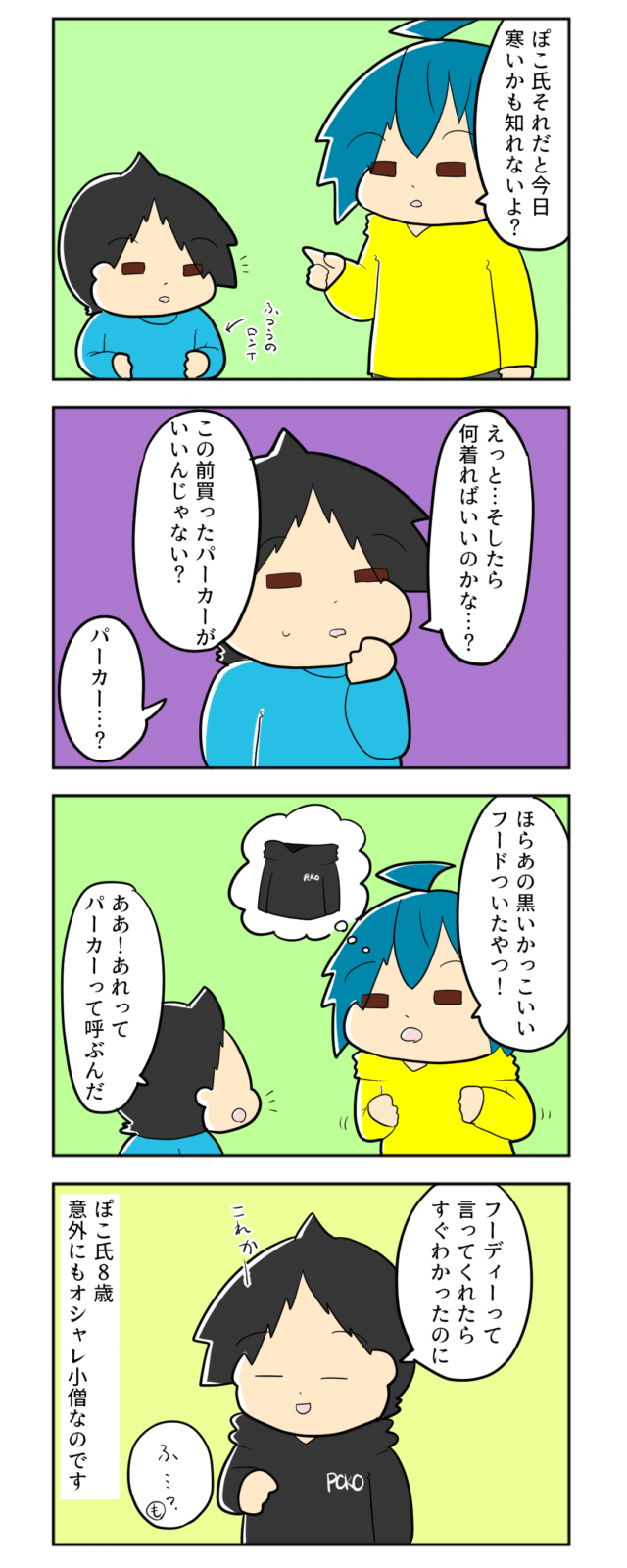 3. フーディーって何!?8歳息子に「パーカー」が通じずびっくり|mochikoの育児マンガ