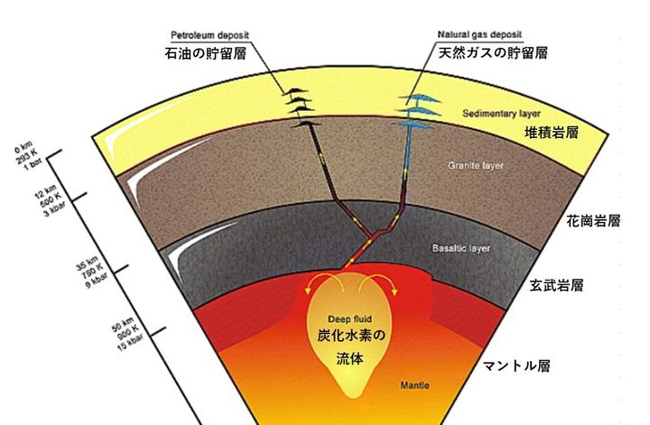 石油成分となる炭化水素を作るためには、起源物質であるメタン、炭素および水素が必要ですが、これらの物質は地球のマントルに豊富に存在しています。