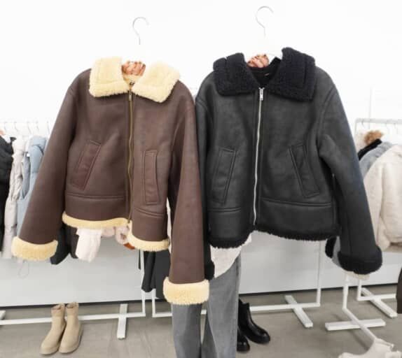 今シーズンの大本命とも言える狙い目アイテムが「レザージャケット」。レザーアイテムというとハードな印象が敬遠してしまう人もいますが、ボアがフェミニンさをプラスして華やかな印象になっているのが特徴です。