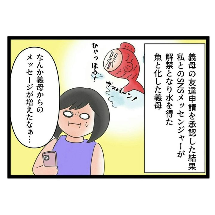 サマ子さんにも義母から友だち申請がきます。一瞬迷いますが、顔を合わせる頻度も高く、承認しないことで角が立つことがあったら嫌だと思い承認をします。ところが義母はSNSが大好きなのか、一日に何度もメッセージを送ってくるようになります。