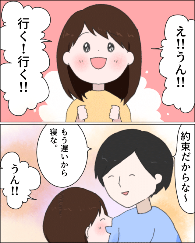 夫が動物園に連れて行くと約束すると、ユリは笑顔を取り戻しました。パッと晴れやかな顔になったユリは、安心してまた眠りにつきました。