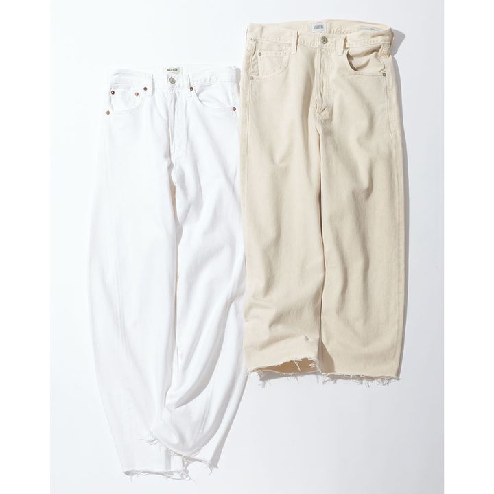<右>パンツ¥46,200(シチズンズ・オブ・ヒューマニティ)※上モデル着用商品<左>パンツ¥41,800(エーゴールドイー/シチズンズ・オブ・ヒューマニティ)