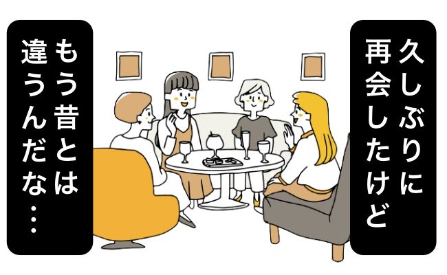 「もう話が合わない…!?」30年ぶりの同期4人の再会で気付いた違和感。大人の友人関係に戸惑い