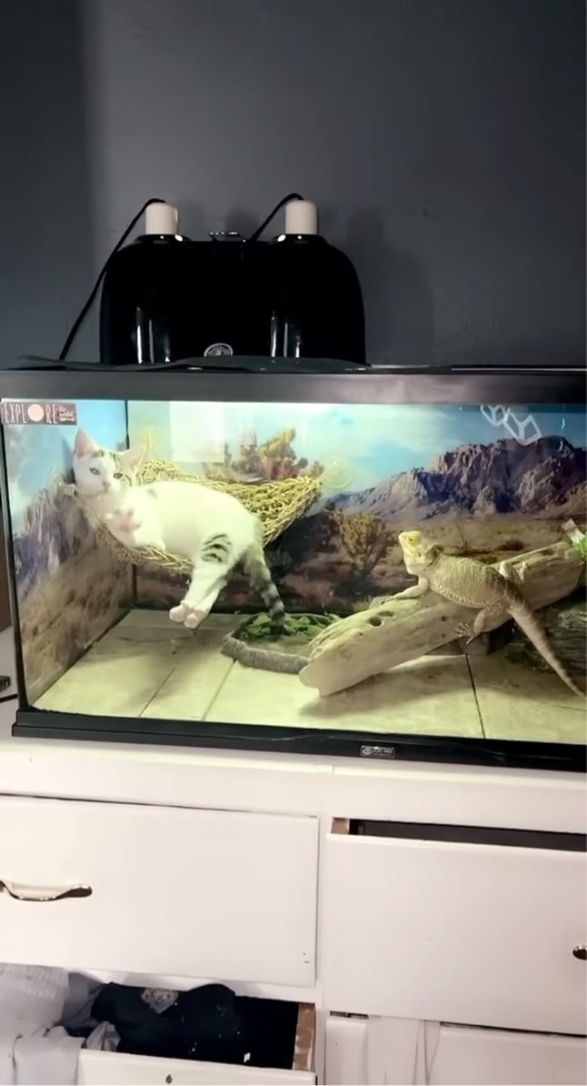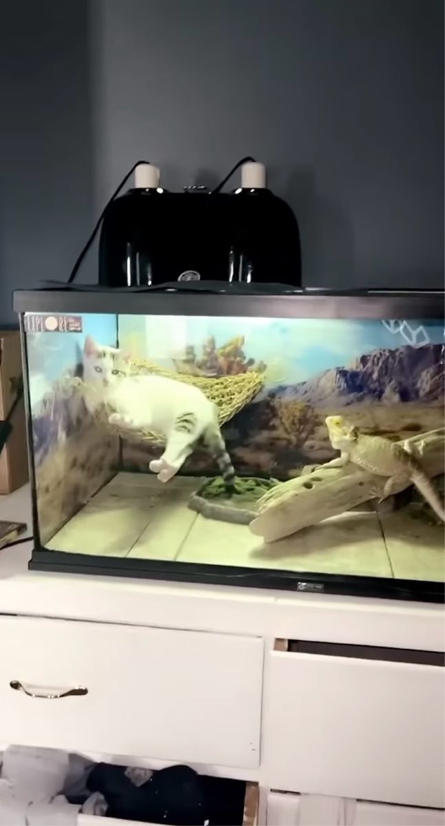 トカゲ用のケージに忍び込んだ子猫。 ハンモックでくつろぐ姿は、こちらの動画からご覧いただけます。
