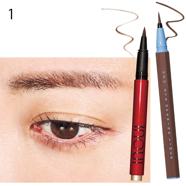 左/20年ぶりに進化して復刻!まぶたに自然に溶け込み、瞳に光を集める色設計に。インウイ アイライナーリキッド 02 ¥4,400(資生堂)
