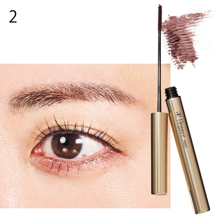 1.肌が白いので、アイライナーやマスカラも優しげのあるブラウンやグレーでまとめて。シアーながら存在感は抜群。