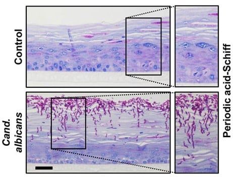 唇の不死化細胞から作られた3Dモデルに、カンジダ・アルビカンスが感染していく様子(下) / Credit:Martin Degen(University of Bern)et al., Frontiers in Cell and Developmental Biology(2024)