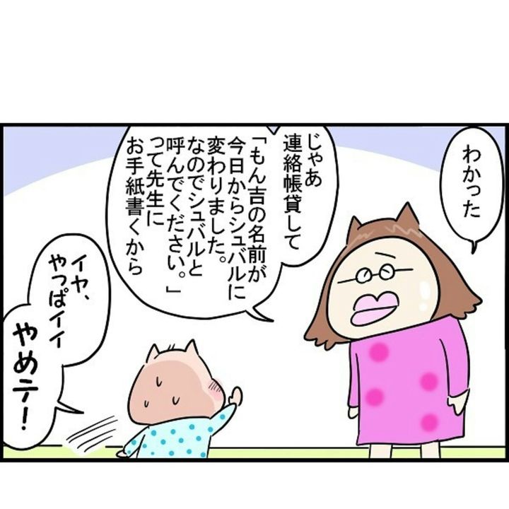 連絡帳に書かれると知って、いきなり現実に引き戻されるもん吉くんがかわいいですね。