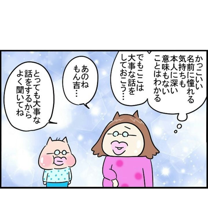 わが子の幸せを願って付けた、大切な名前。その名前を変えたいとわが子に言われたら、どうしますか?ネコおやじ(@nekooyazi4231)さんは、ある日末っ子・もん吉くんかた名前を変えたいと言われました。いきなりでショックを受けるネコおやじさんでしたが、詳しく話を聞いてみると…。『末っ子が改名したいってよ』をごらんください。