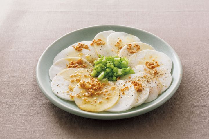ホムパにも!簡単でおしゃれなつまみサラダ『かぶのガーリックカルパッチョ』の作り方