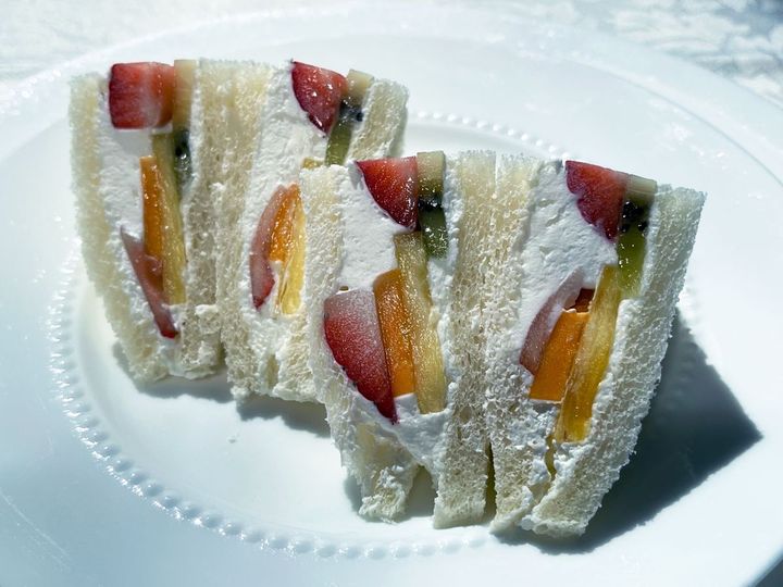 ホイップクリームやフルーツ同士の相性を考え、甘みと酸味のバランスにこだわったという「フルーツサンドイッチ」は、思いのほか軽めの仕上がり。パンの生地にほのかな塩味があり、甘さを抑えたクリームもあいまって、フルーツがより際立ちます。