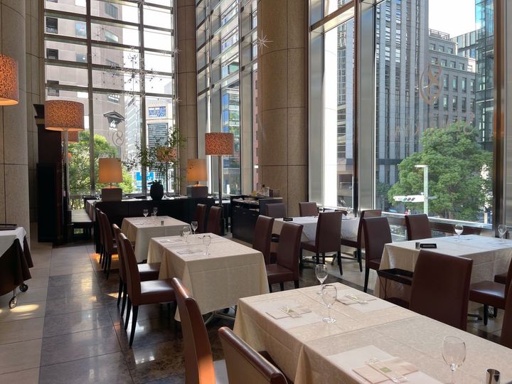店内は大きなガラス窓から光が差し込み、ご覧のとおりの開放感。日本橋の歴史ある街並みも合わせて楽しめます。