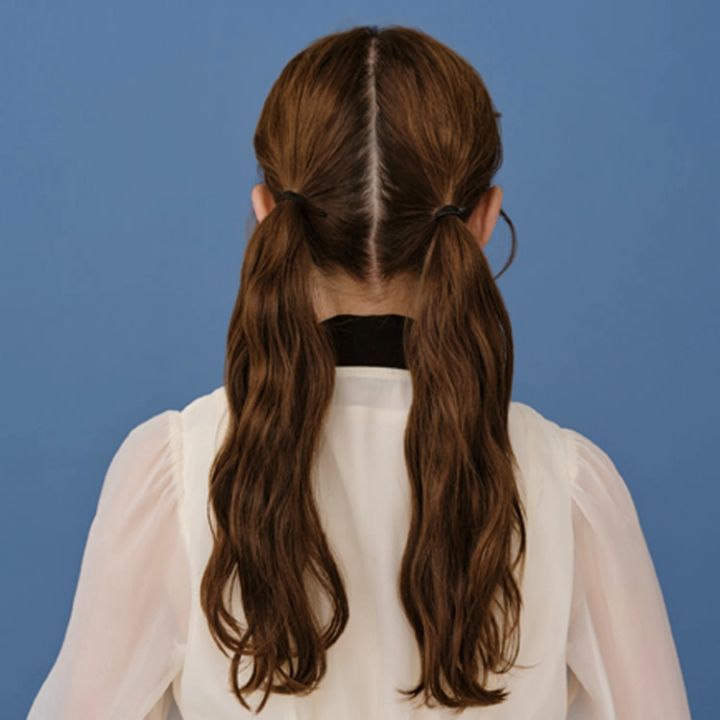 髪全体を2つに分け、ゴムで結んでツインテールをつくる。ツインの位置は、耳の高さで後ろめにするのが今っぽい。