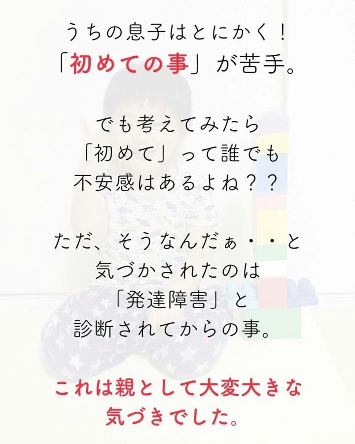 5歳でADHD・広汎性発達障害と診断された息子。大人でも「初めてのこと」は不安が大きいですが、わが子にとっての「初めてのこと」は親が思っている以上にハードルが高いようでした。この記事はインスタグラムで「発達障害と共に生きる」家族のコミュニティー「そらあい」のSHI-・ママに寄り添う「発達凸凹育児」についてアドバイスする(@_so_ra_ai_)が、障害のある息子と取り組んできたことをご紹介します。