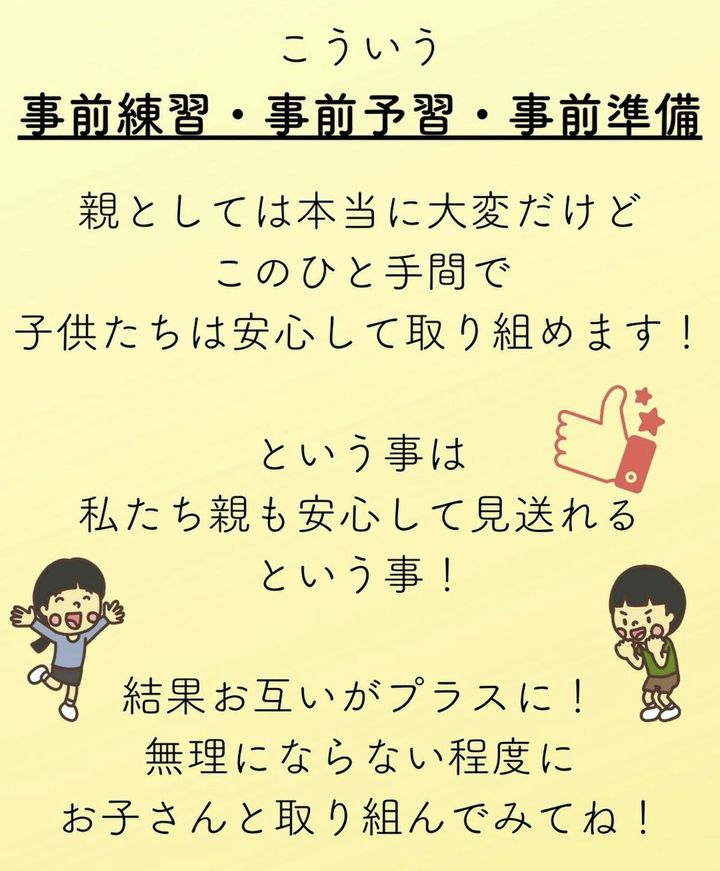実際に「できなくて苦しい」と感じるのはわが子ですが、できるだけ事前に取り組むことで、その心配を取りのぞくことができるのは親である私たちの存在が大きいと思います。