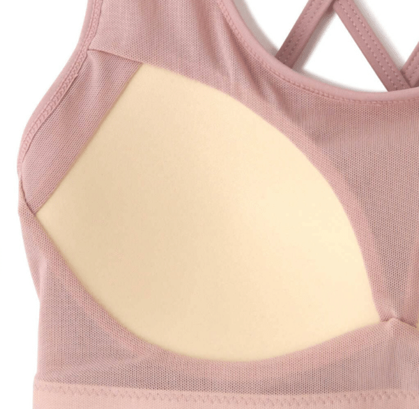 裏が通気性のあるメッシュ素材で、運動時に汗ばむ胸周りも気にならない。また、カップが縫い付けてあるタイプなので、洗濯によりカップの形が崩れる心配もなし。バストを心地よくサポートしてくれる、安心できる作りだ。