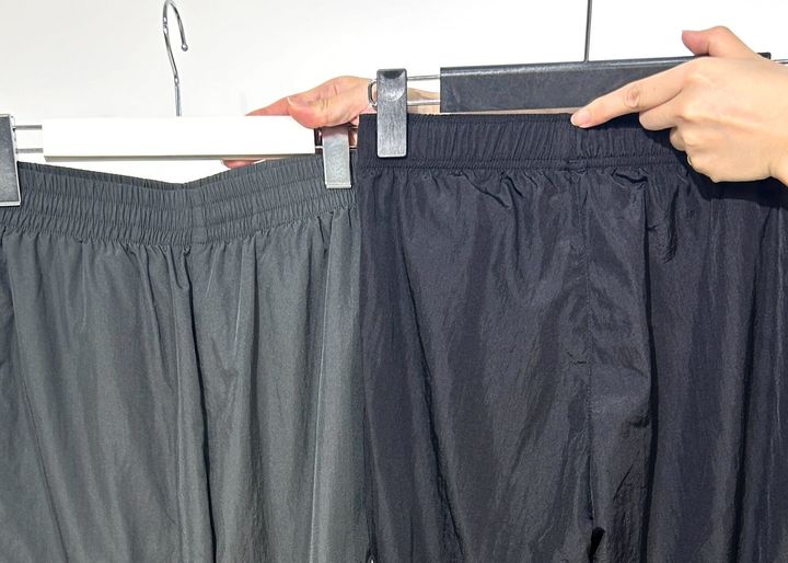 女性が日常に取り入れやすいデザインが揃っており、その中から`90年代ファッションの流行に乗って、人気が再熱してきた“ヴィンテージナイロン”を使ったセットアップをピック。早速、2つのカラーバリエーションを試着していこう。