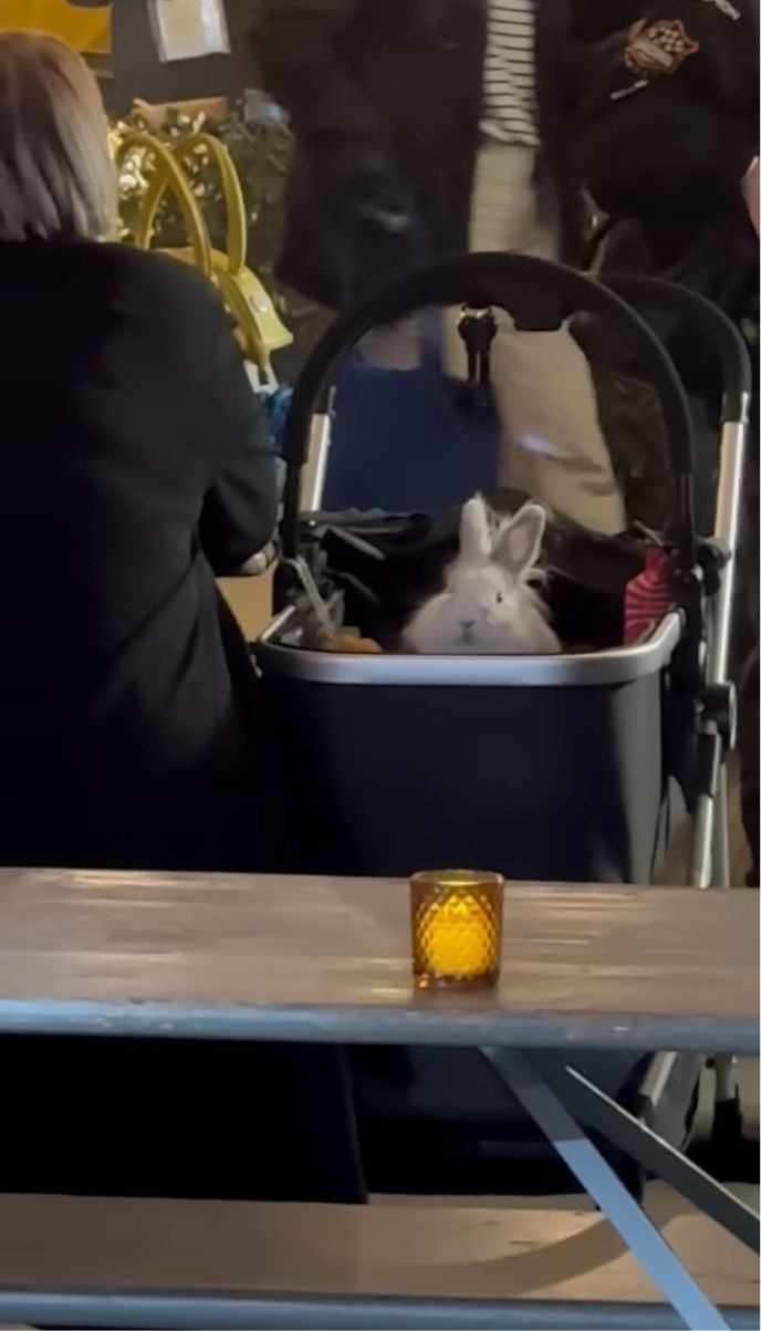 ベビーカーに乗っていたウサギ。 愛らしいその姿は、こちらの動画からご覧いただけます。