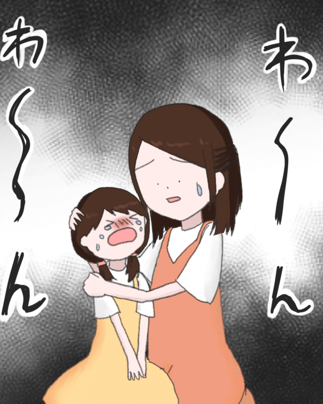 ずっとこらえていたユリは、夫が出て行った後に大泣き。ムギちゃんを思いやる気持ちと、パパに約束を破られた・・・そしてムギちゃんにパパと取られてしまうのではないかという不安でまだ5歳のユリはたくさんの感情に押しつぶされそうだったに違いありません。