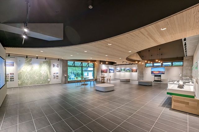 天候やクマの出現情報をすぐにキャッチできるほか、おすすめの散策ルートも常駐のスタッフさんが丁寧に案内してくれます。館内には奥飛騨の自然や歴史を解説した展示もズラリ。木工細工のワークショップも行われているので、天気の悪い日でも楽しめます。
