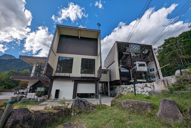 西穂高岳へのアクセスルートにもなっている「新穂高ロープウェイ」。第2ロープウェイの出発点である「しらかば平駅」から、日本唯一の2階建てゴンドラが運行。ゴンドラからは広い自然の景色が望めます。