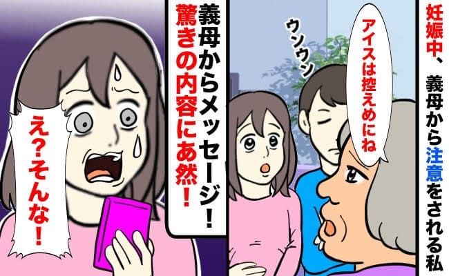 義母「アイスは控えめにね…?」妊娠中に注意をされた私。帰宅後、驚きのメッセージ!義母の本音とは