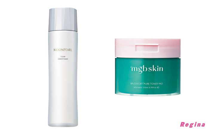 左/「ムーンパール クリアコンディショナー」200mL ¥6,820(ミキモト コスメティックス)、右/「マグワート ピュアトナーパッド」60枚入 ¥3,300(MEGOOD BEAUTY)