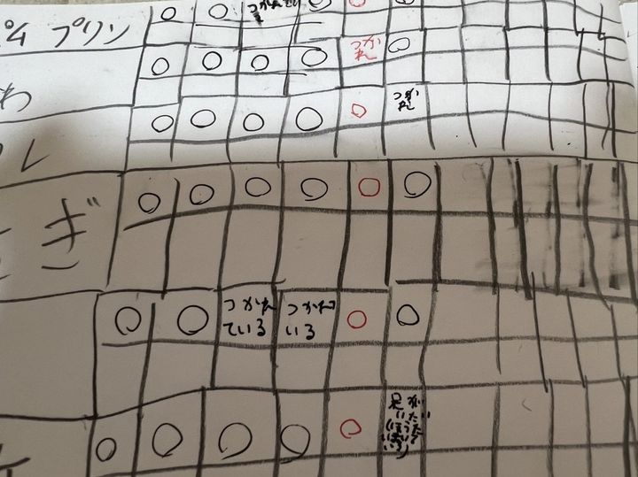 伊藤賀一さんの娘さんが作ったのは大人顔負けの「チェック表」!表には持っているぬいぐるみがずらっと一覧で記入され、健康度が丸で書かれています。しかし、表をよく見てみるとどうもみんなが元気いっぱいではない様子も…。