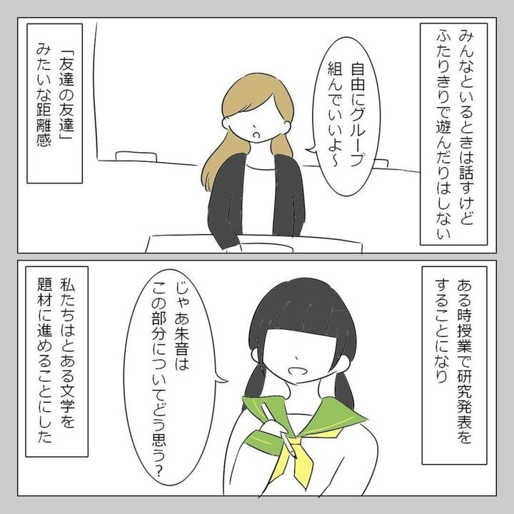 このお話は、著者・ゆいな(@yuina.kajima)さんが大学生だったころ、友だち関係に悩んだエピソードが描かれています。大学に入ってから何となく行動をともにし始めた美姫・華とは価値観が合わないと感じ、別の友人・朱里に相談。すると、親身になって話を聞き、怒ってくれました。実は過去、この友人とは本音でぶつかったことがあり…。『友達だと思っているのは自分だけかもしれない』をダイジェスト版でごらんください。