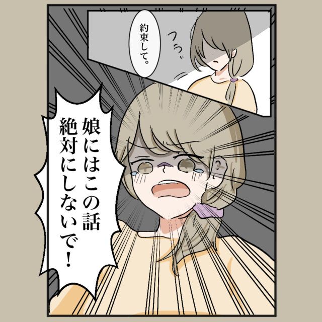 最愛の娘叶実ちゃんの名前がご主人の元カノと決めた名前だと知って絶望的な気分になったゆうかさんは、「約束して。娘にはこの話絶対にしないで!」強い口調で言いました。