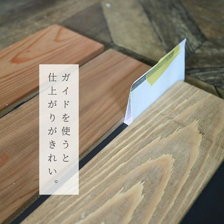 きれいな仕上がりにするには、板を同じ幅で貼るのがコツ。ガイドを作ると簡単に幅をそろえることができますよ。お菓子の空き箱などを活用して作ってみましょう。このひと手間で作業がグッと楽になります。