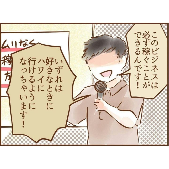 漫画によると、マルチ商法は、勧誘だと言わずにセミナーやイベントと称して、集客をすることがあるようです。参加して何かおかしいと思ったら、決して購入したりビジネスの勧誘に乗らないようにしましょう。