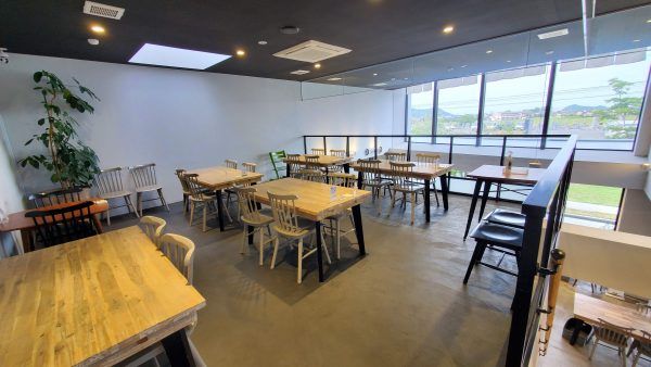 2階は、団体のお客さんも利用できるワークスペースが大小2つ。貸切予約も可能で、食事会、ミーティング、ワークショップや親族の集まりなどにピッタリ。Free Wi-Fi完備です。詳しい利用案内は公式ウェブサイトへ