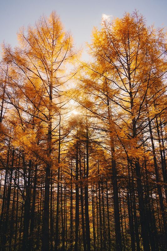 カラマツが逆光を浴びると、透き通って見えるのです。
