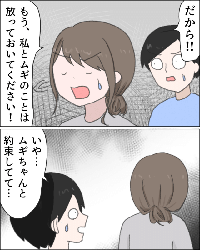 ムギちゃんママは、明らかにいらだった様子で「だから!!もう、私とムギのことは放っておいてください!」とそっぽを向かれてもなお、夫は「いや、ムギちゃんと約束してて」と、どちらかと言うと夫が頼られているというよりは、迷惑そうなムギちゃんママに夫が食い下がっているように見えました。