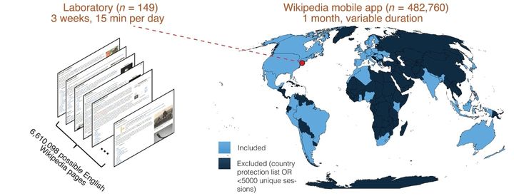 研究チームは世界50の国と地域(全部で14言語)における48万2760名のウィキペディアユーザーを対象に、ウィキペディアの閲覧データを収集しました。