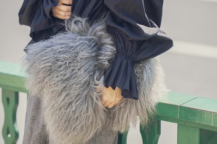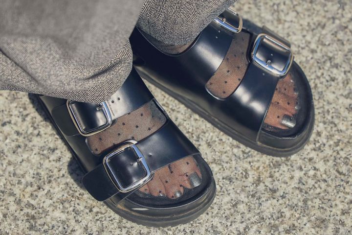 カジュアルなバックル付きスポサンにシアーソックスを合わせて、足元でリラックス感を演出。本格的に寒くなる前の秋のスイッチコーデにもおすすめです。甘さと遊びを効かせたファーバッグは、アクセントとしてアクセサリー感覚で持てるので秋冬は大活躍。あえて季節感の異なるサンダル×ファーを掛け合わせた外しテクで即おしゃれ上級者に!